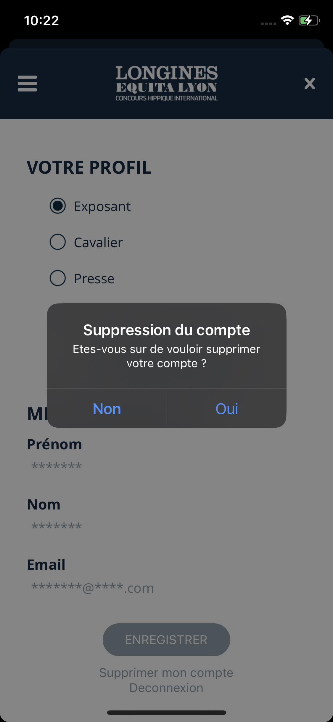 Pour supprimer votre compte, vous avez 2 méthodes possibles. Depuis l'application Equita lyon en suivant les étapes indiquées sur cette page. Ou en déposant votre demande via le formulaire ci-dessous.